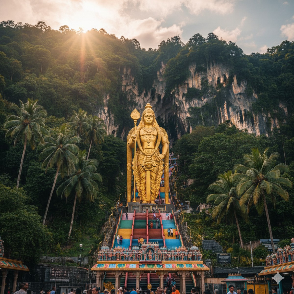 - Batu Caves – Stunning limestone caves with colorful temples and giant Murugan statue.